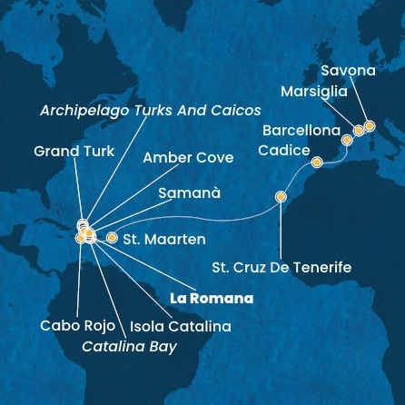 Repubblica Dominicana > Isole Turks > Antille > Isole Canarie > Spagna > Francia > Italia